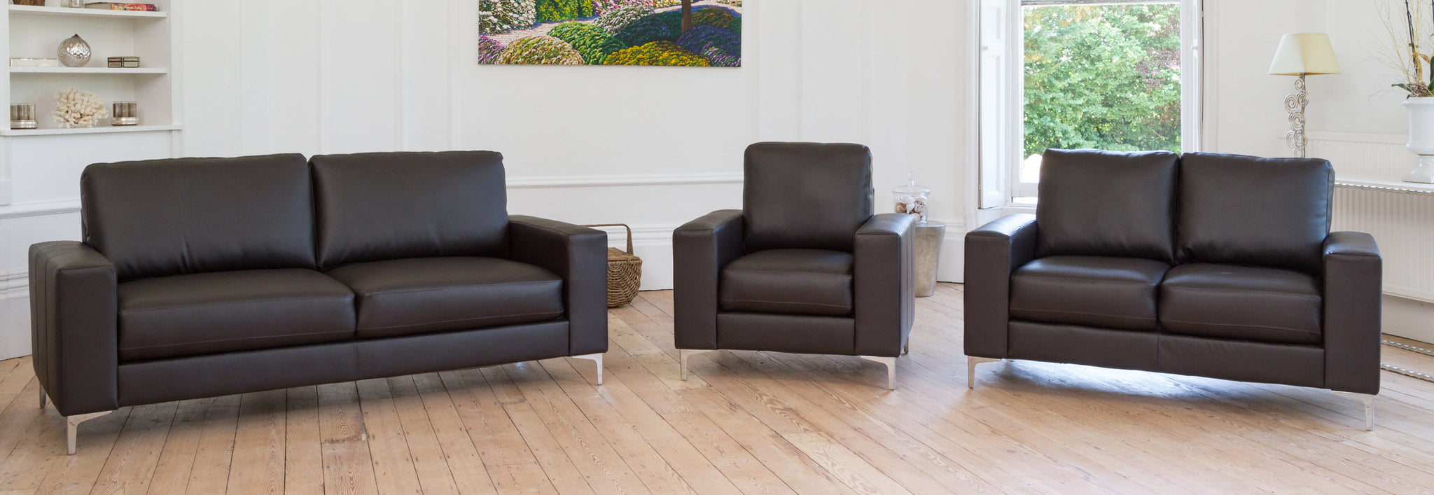 The structure of the sofa is made from a hard wood and filled with a sprung interior topped with densely filled foam cushions for the perfect combination of comfort and support. The suite is covered in a durable bonded bicast leather with a faux leather covering on the low stress areas - easy to clean and very hard wearing and is supported by elegant chrome legs.