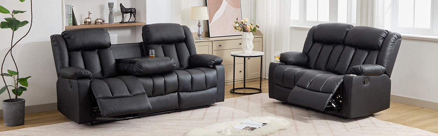 Brereton 3 Seat Recliner Sofa with Centre Console Black