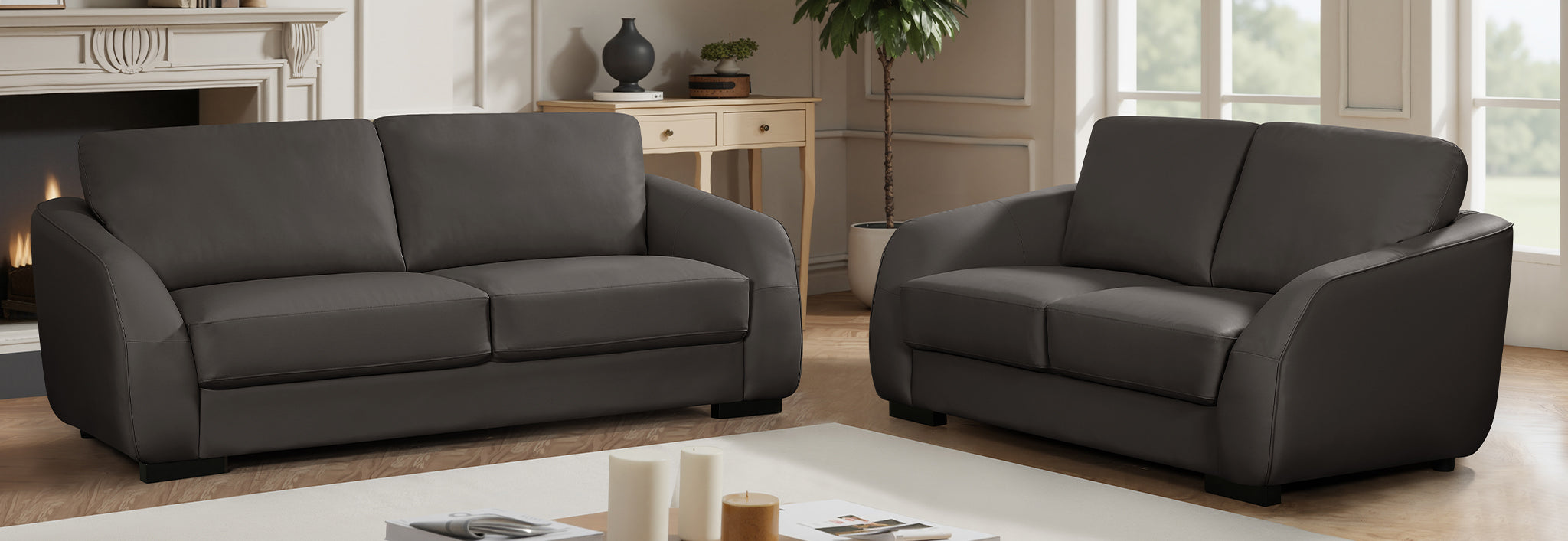 The Drayton sofa delivers contemporary comfort with a practical design, upholstered in bonded leather and PU for a sleek and durable finish. Its modern compact design makes it an excellent choice for smaller living spaces or those looking to maximise their room layout. Fibre-filled back cushions provide inviting comfort, while pocket sprung foam seat cushions ensure firmness and resilience, keeping the sofa looking and feeling great over time. With a sprung interior for additional support and durability, the Drayton is built for everyday living while retaining its stylish edge. Combining practicality with elegance, this sofa is the perfect choice for anyone seeking a modern yet comfortable addition to their home.
